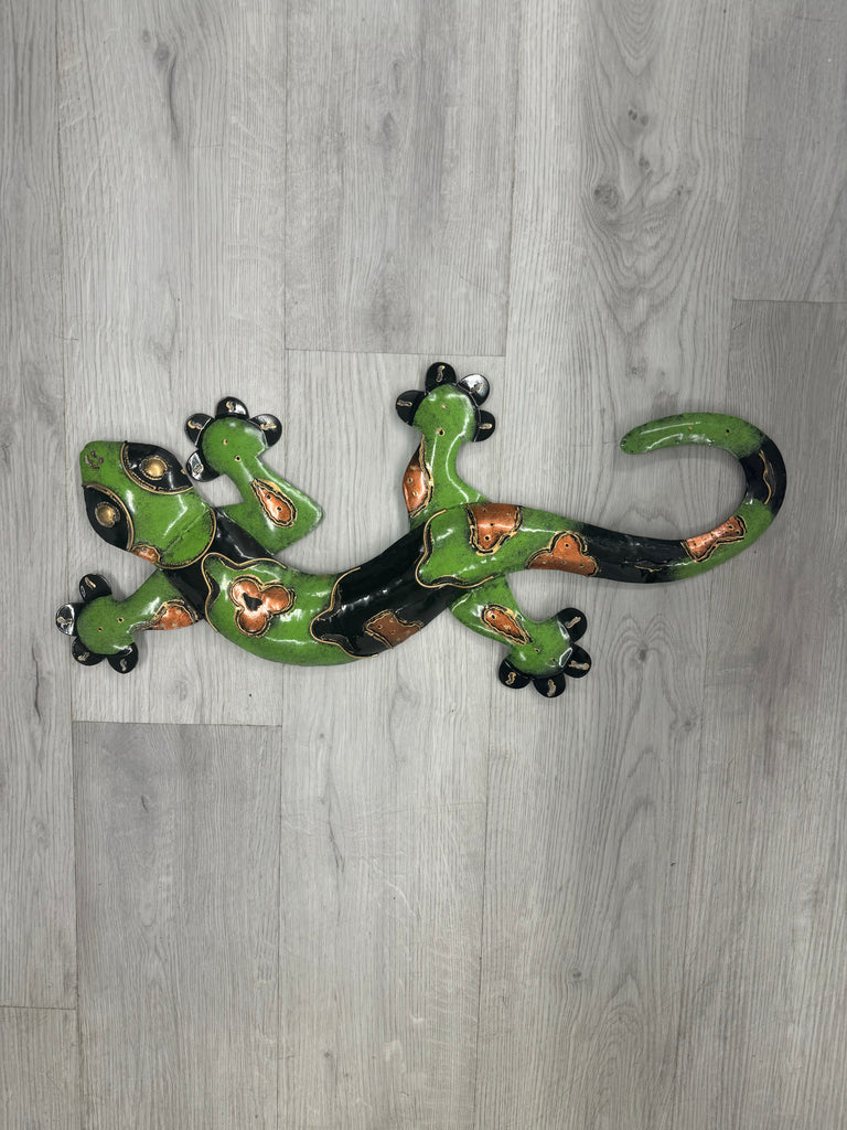 Stunning Green/Black/Bronze with Gold Trim Lizard Ghecko Metal Art