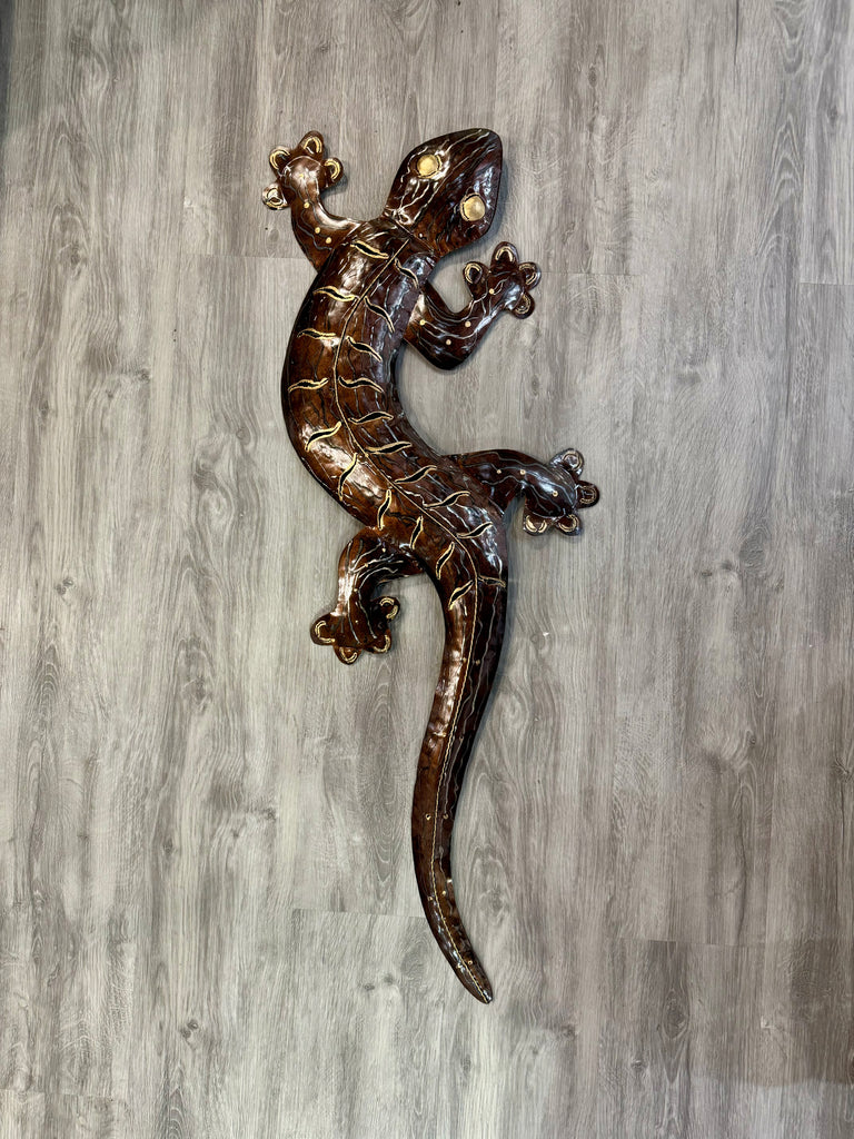 Ghecko Lizard Silver Metal Wall Art 102cm Large - LOW STOCK