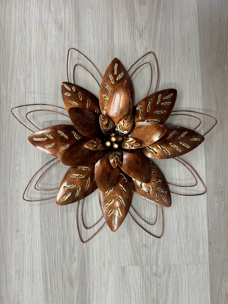 Lotus Flower 3D Silver/Gold with Metal Trim Metal Wall Art 40cm