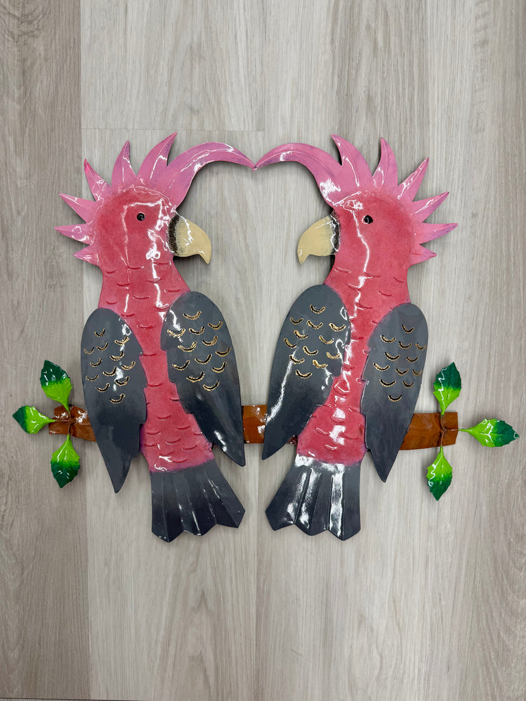 Handmade and hand-painted, this pair of left and right facing Pink Galahs are delightful